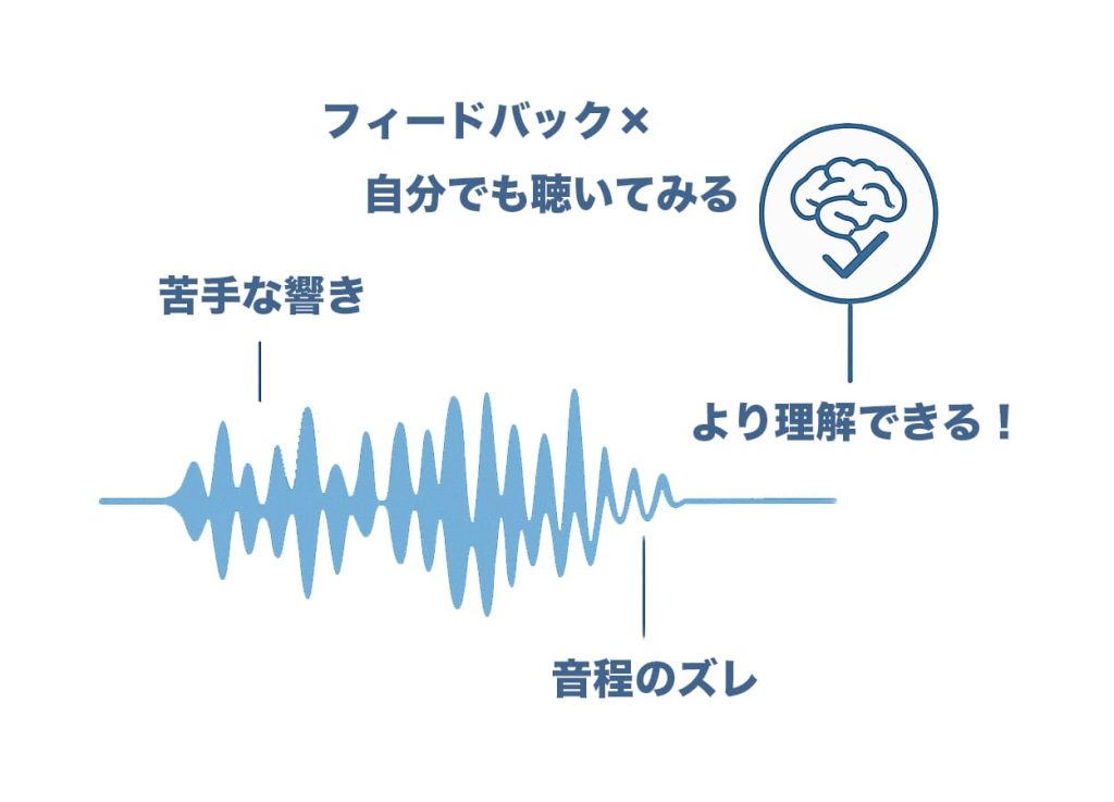 一緒に録音を聴いて課題と成長ポイントを明確化します。